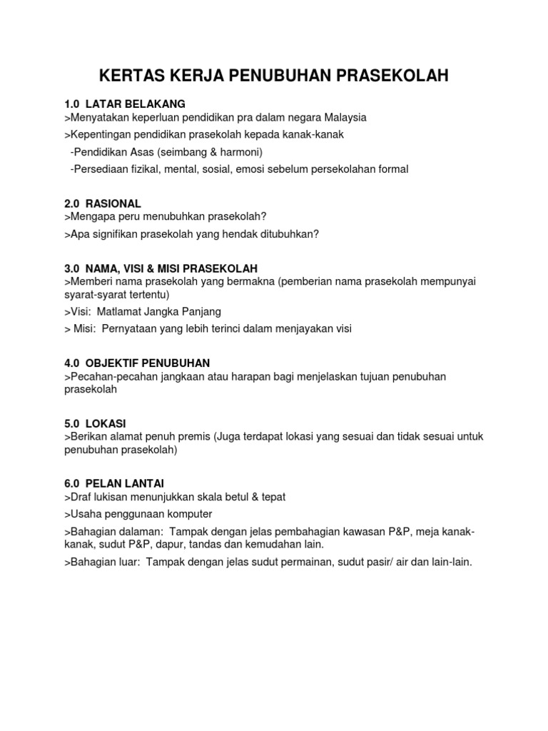 Kertas Kerja Penubuhan Prasekolah Pdf